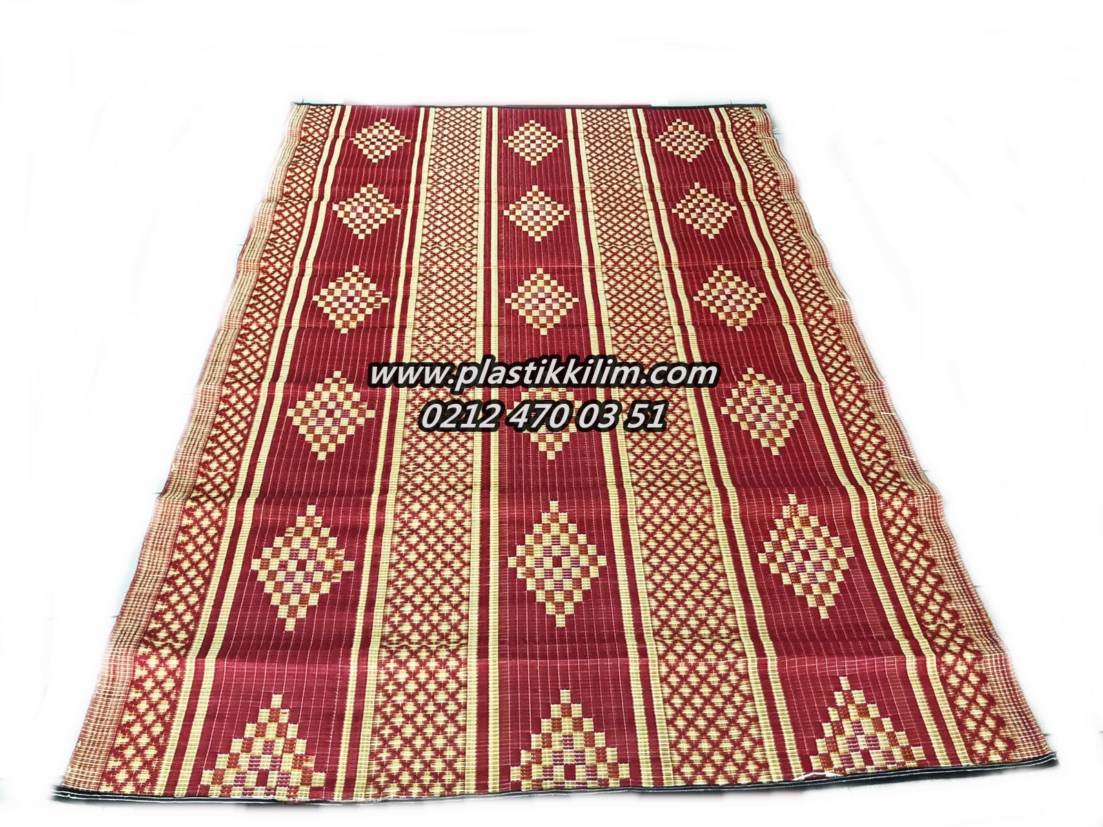 Kırmızı Bordo Renk Renk Kilim Desenli Cami Hasır Çift Taraflı Cami Hasırı